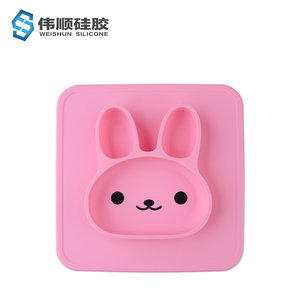 1、可愛的卡通兔子餐盤,食品級(jí)硅膠材質(zhì),背后吸盤,可以牢牢吸在桌子上。