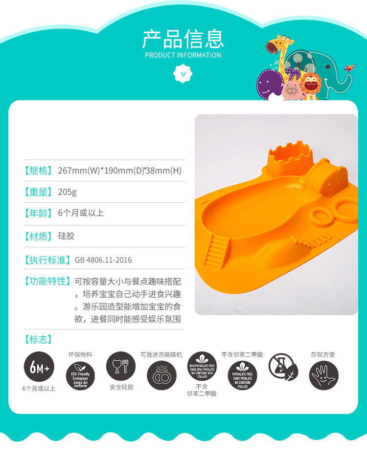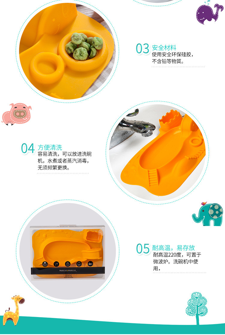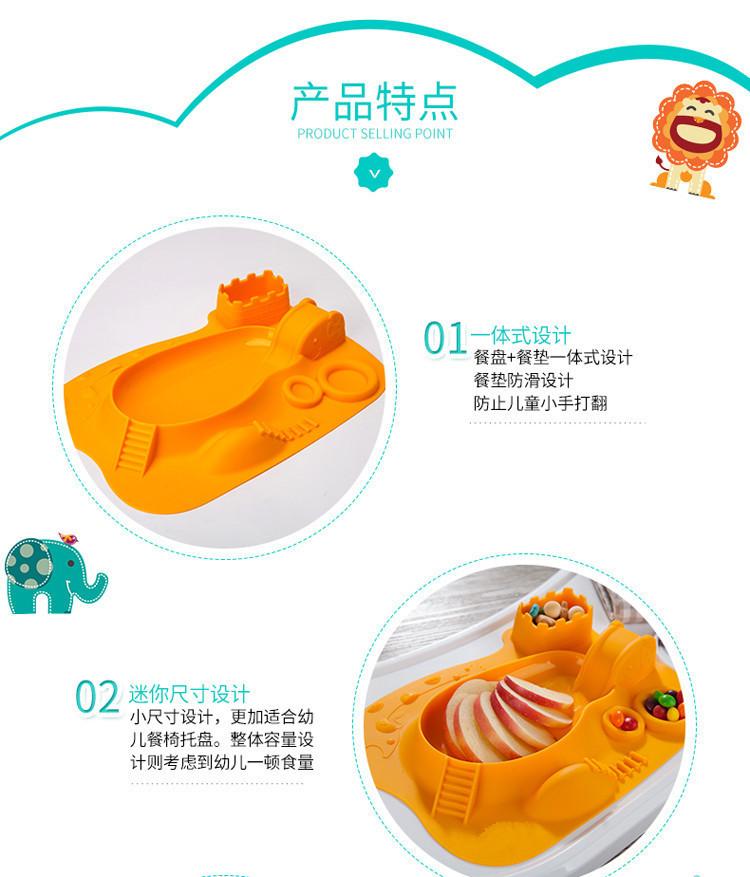5、餐盤+餐墊一體式設(shè)計,餐墊防滑設(shè)計,防止兒童小手打翻