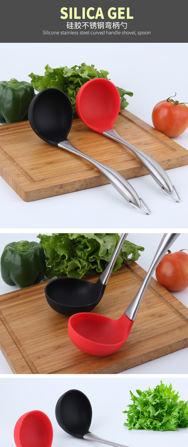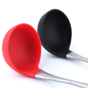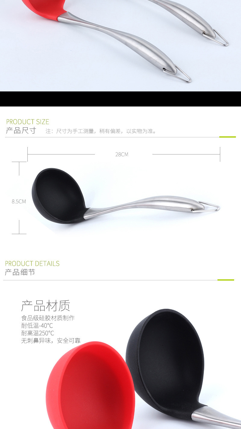 - 硅膠不銹鋼柄湯勺,硅膠不銹鋼長柄湯勺,硅膠不銹鋼柄大號湯勺
