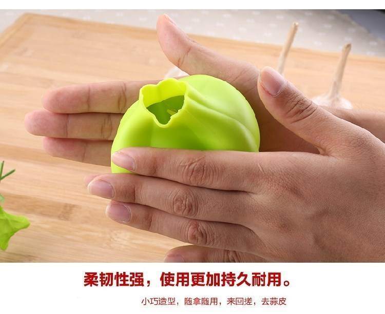 名稱:硅膠剝蒜器尺寸:9*8cm克重:28g材質:食品級硅膠硅膠耐溫范圍:-40-230°包裝:單只裝開口PP袋