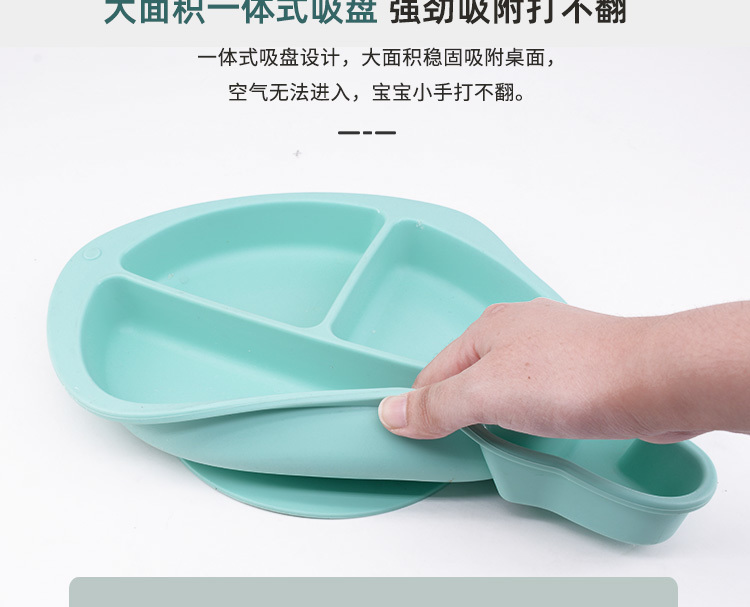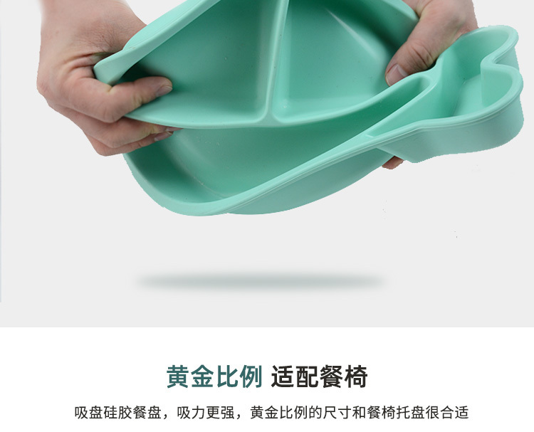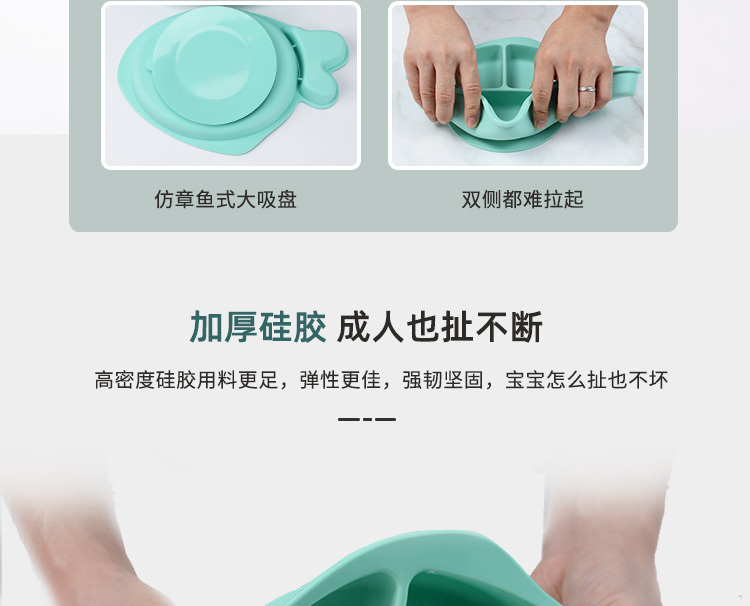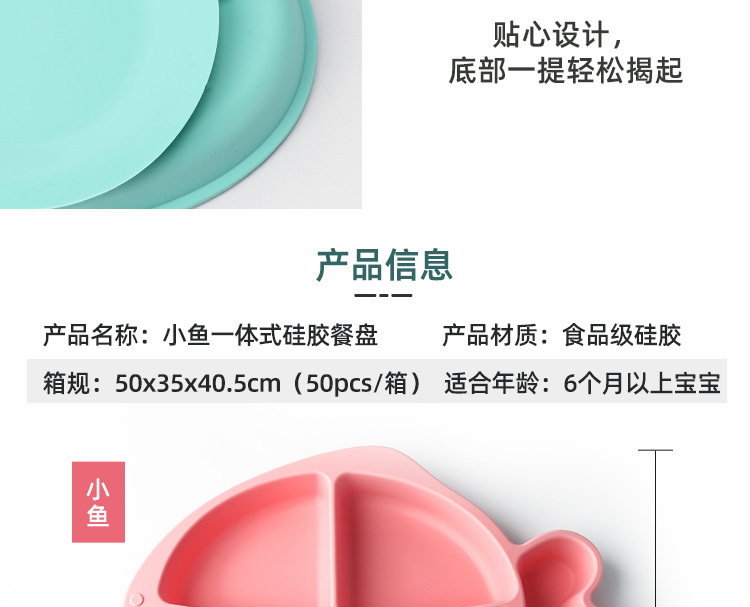 • 小魚硅膠餐盤-一體式分格吸盤防摔兒童食品級硅膠餐盤