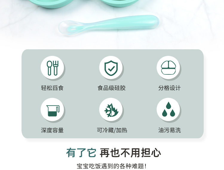 食品級(jí)硅膠,可含雙酚A、PVC安全性無毒性,耐高溫-20 ℃-120 ℃,裝燙一點(diǎn)兒的食材也徹底OK!有時(shí),小孩吃著吃著就一不小心把硅膠餐盤弄翻了。小汽車選用獨(dú)特止滑設(shè)計(jì)構(gòu)思,可密不可分迎合、死死地吸咐在餐桌表層,避免一瞬間滑掉及反而。